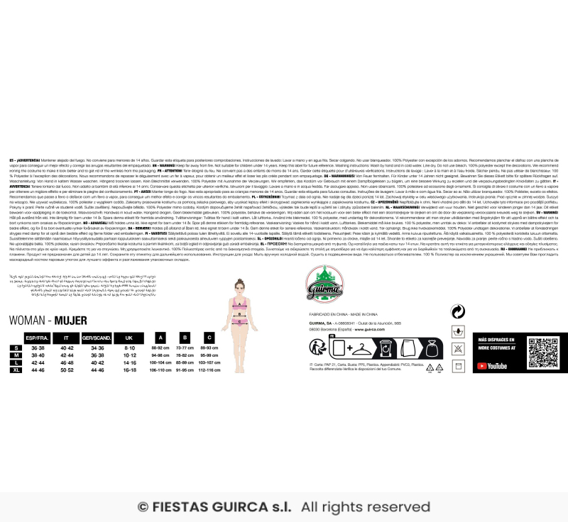 Kostým se skládá z šatů, šátku a šály. 100% polyester. Vhodné pro velikost S, M.