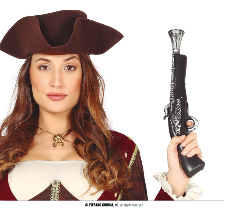 Pirátský set obsahuje červený šátek s motivem lebky, plastovou klapku na oko a zlatou naušnici.