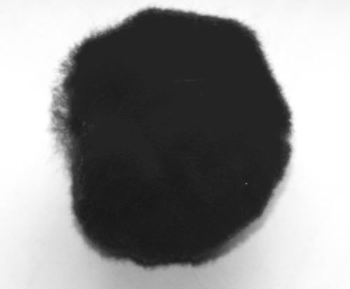 Červený pompon 6 cm v průměru.