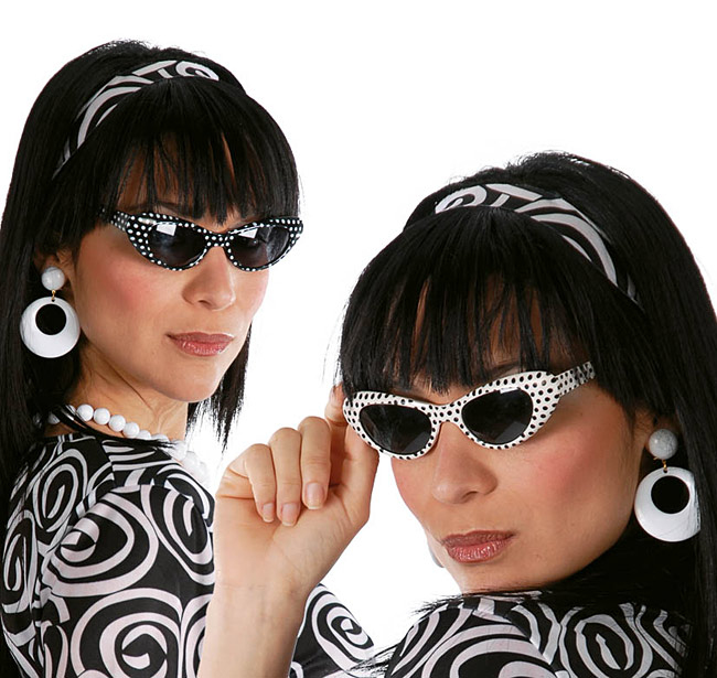 Brýle s připojenýma ušima medvěda po stranách. Ve spodní části je upevněn krátkými řetízky černý čenich.