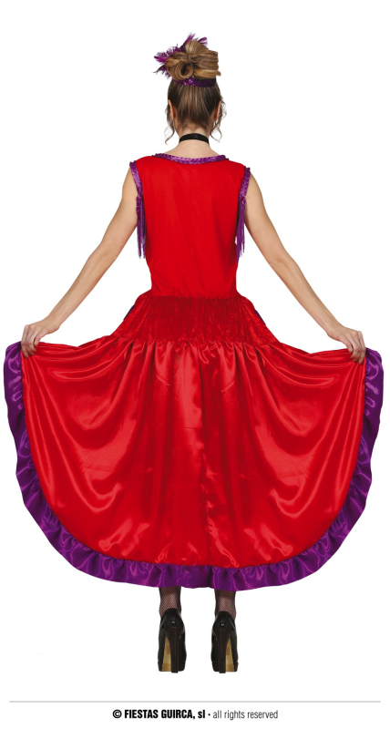 Červená sametová tunika se stojatým límcem a tylovými rukávy vhodná na Halloween.