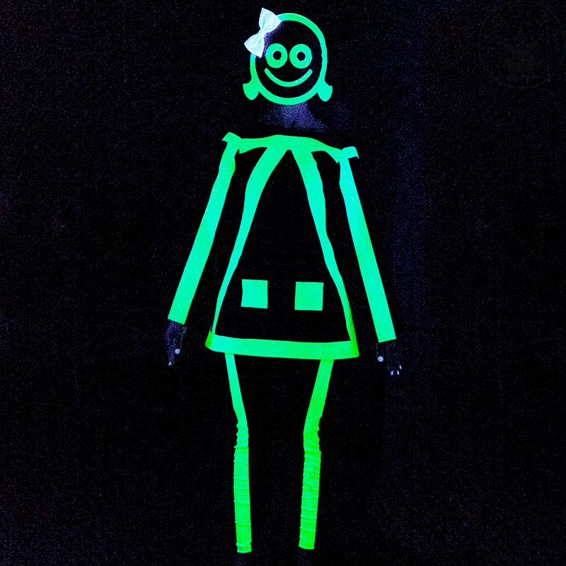 Dámské šaty s kapucí a fluorescujícím potiskem kostry