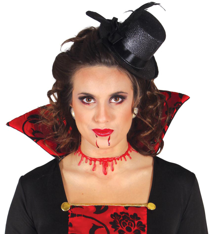 Gumový náhrdelník s řetízkovým zapínáním. Vytváří efekt uřezané hlavy.