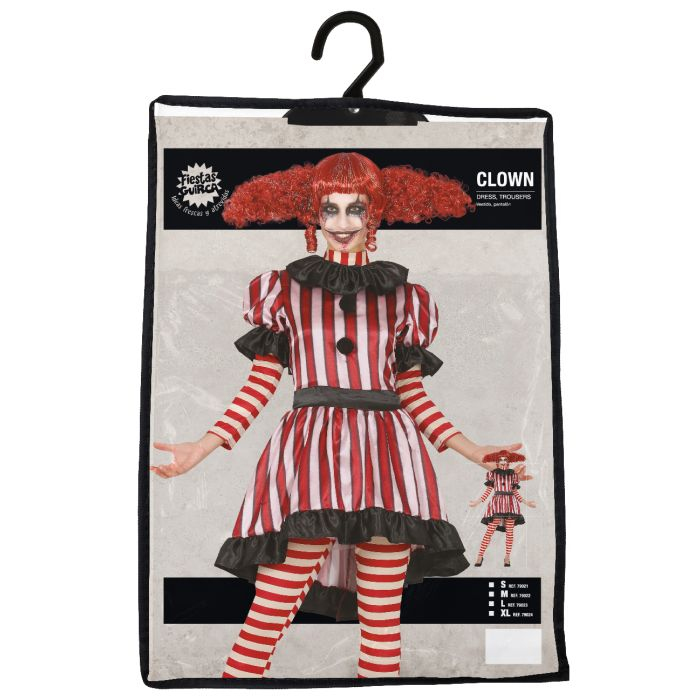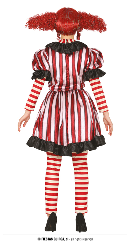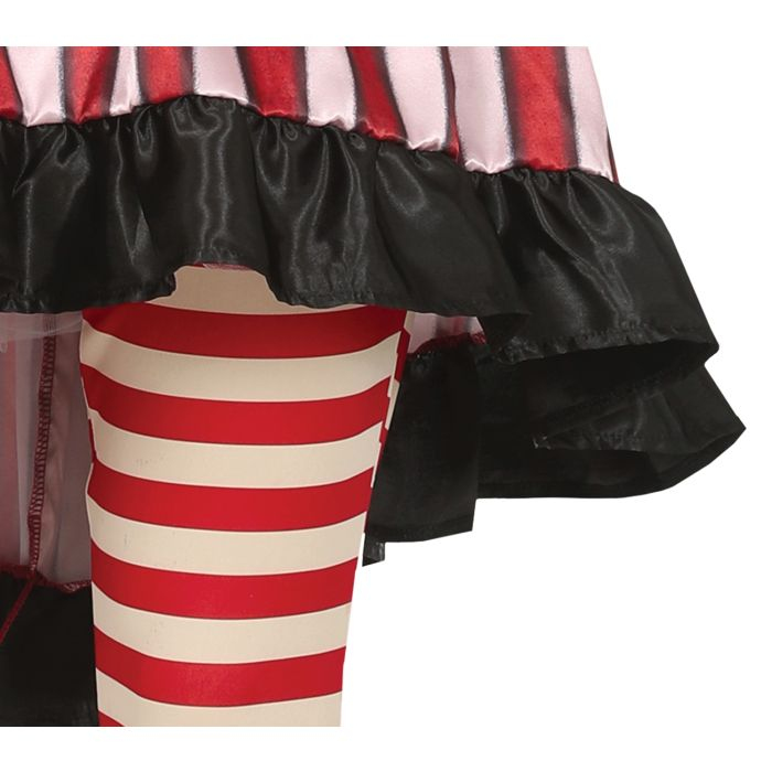 Velmi nápaditý kostým vhodný na klauna, mima či Halloween. Krásně propracované šaty s tylovou spodničkou a zdobením. Legíny jsou součástí kostýmu.
