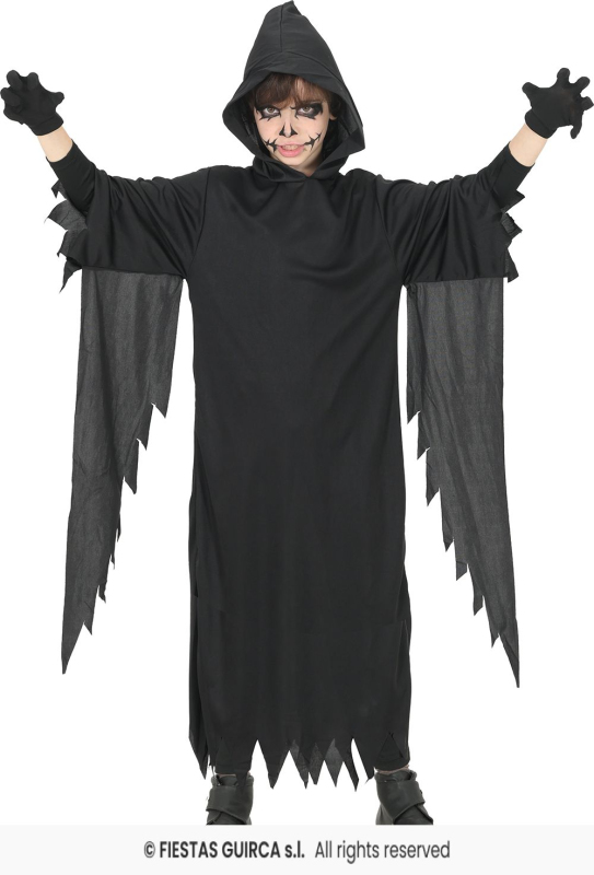 Tmavý top s potiskem bílé vlčí hlavy. Černá sukně se zářivým tylem. Bolerko přes ramena a pár návleků na boty. Včetně oušek. Rozměr M/L – sukně délka 31/34, pas do gumy 46 – 66/54-66 cm, halena délka 37/45 a hruď 74/90 cm.