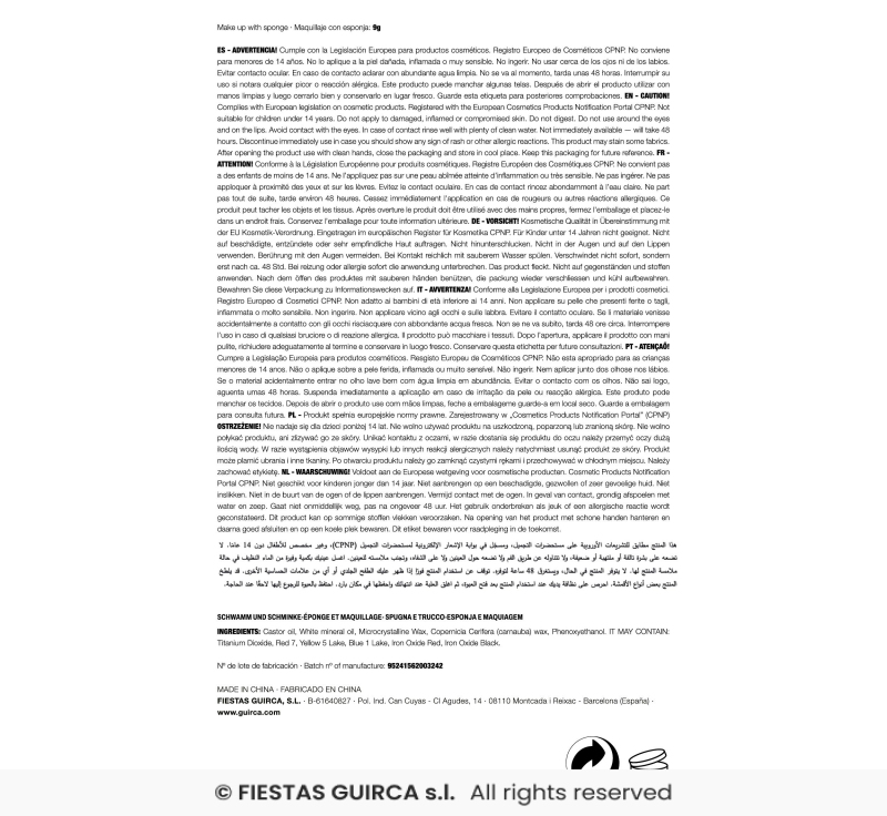 Líčidlo na bázi tuku. Lehce smyvatelné teplou vodou a mýdlem. Po otevření je nutné spotřebovat do 6 měsíců. Líčidlo se nanaáší prstem nebo přiloženou houbičkou. Nepoužívat na poraněnou nebo extrémě citlivou pokožku. Obsah 9 gr.