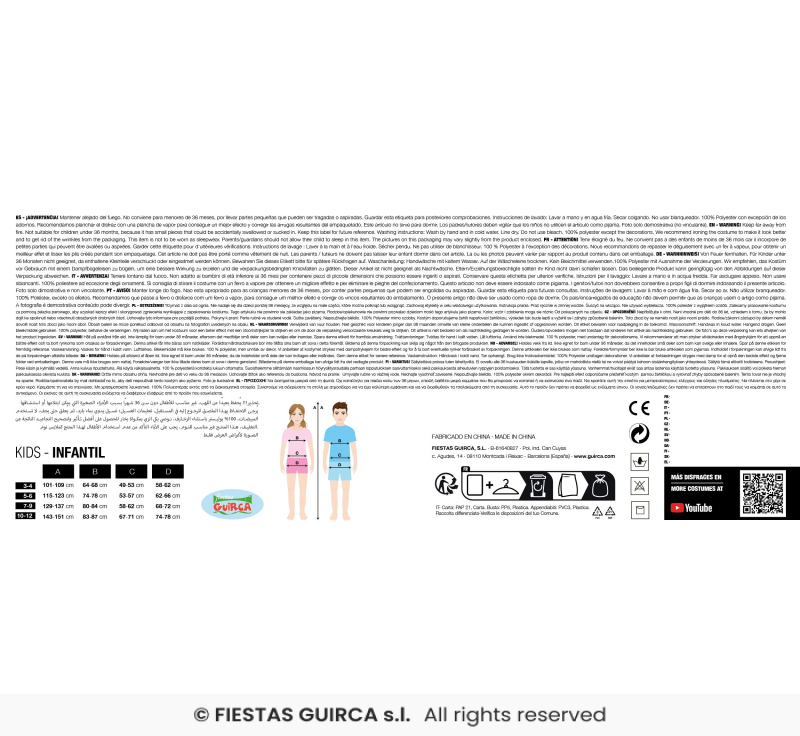 Tunika, plášť, čelenka, návleky na ruce a nohy. Další velikosti viz. 81512, 81513.