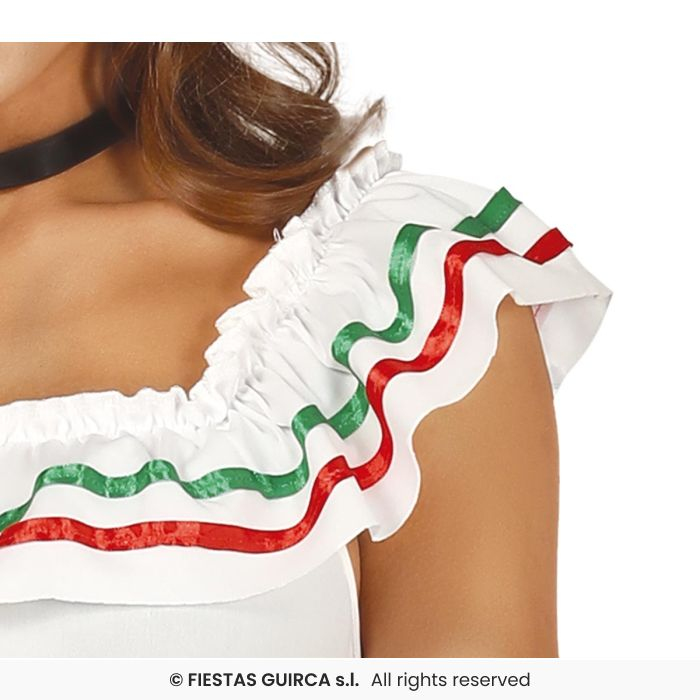 Kostým se skládá z šatů s šerpou a lavrového věnce. Vhodné pro velikost L, XL.