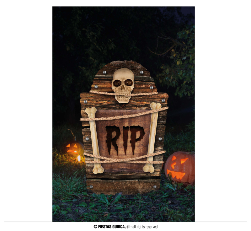 Strašidlo v životní velikosti. Součástí je i stojan. Strašidlo vydává zvuk a blikají oči. Baterie AAA jsou součástí.