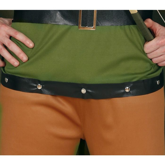 Hnědý top z doby kamenné s polovičními rukávy a rozeklaným lemem, tmavě hnědým kožešinovým lemem a pláštěm připevněným k zadní části. Kostým má našitý na bederním roušku, který je zdoben hnědým plyšovým krkem a ozdobnými kostmi. Včetně návleků na ruce z tmavě hnědé kožešiny a návleků na nohy s plyšovými ověsy a ozdobným šněrováním.