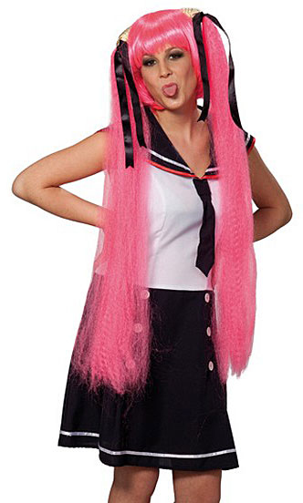 Černá krátká paruka, vhodná k doplnění čelenkou a pod. Čelenka není součástí.