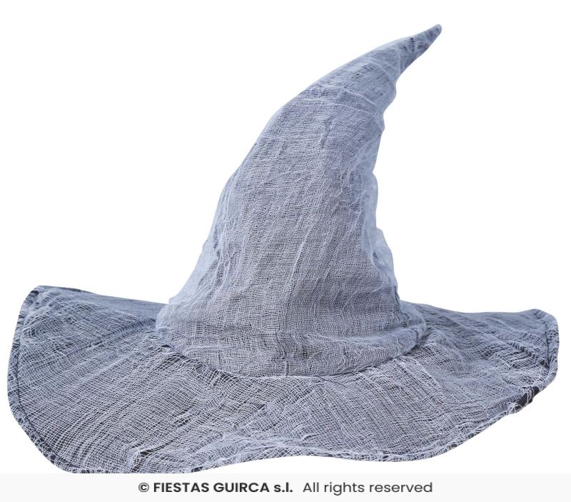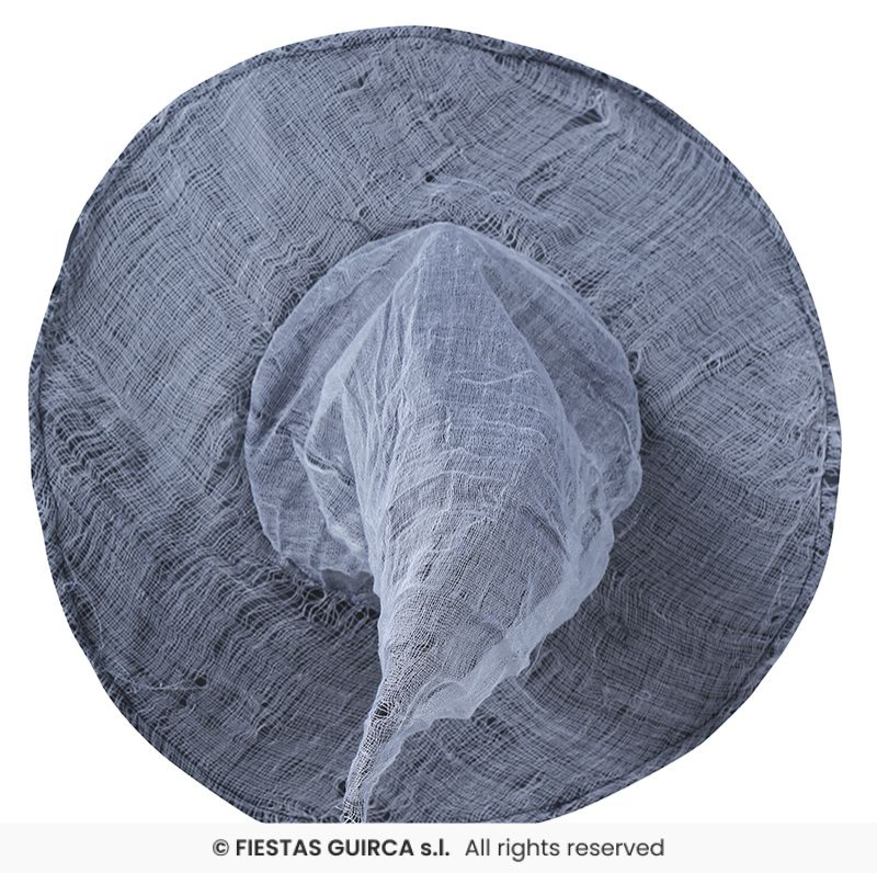 Čarodějnický klobouk s tylovým závojem. Velikost 58 cm.