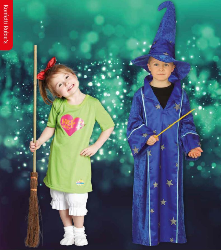 Dětský kostým čarodějnice - zeleno-černé šaty s kapucí ozdobenou stříbrným pavoukem. Pavouk v ruce není součástí. 100% polyester.