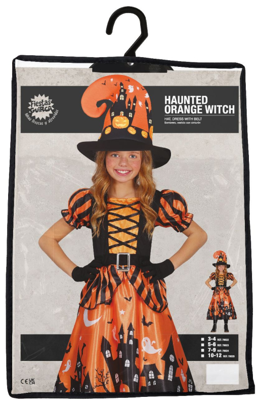 Oranžová potištěná kombinéza pro děti se světlým límcem. K nohám je připevněn polstrovaný chránič holeně a kolen. K dispozici je také atrapa pásu a odpovídající Ezra maska.