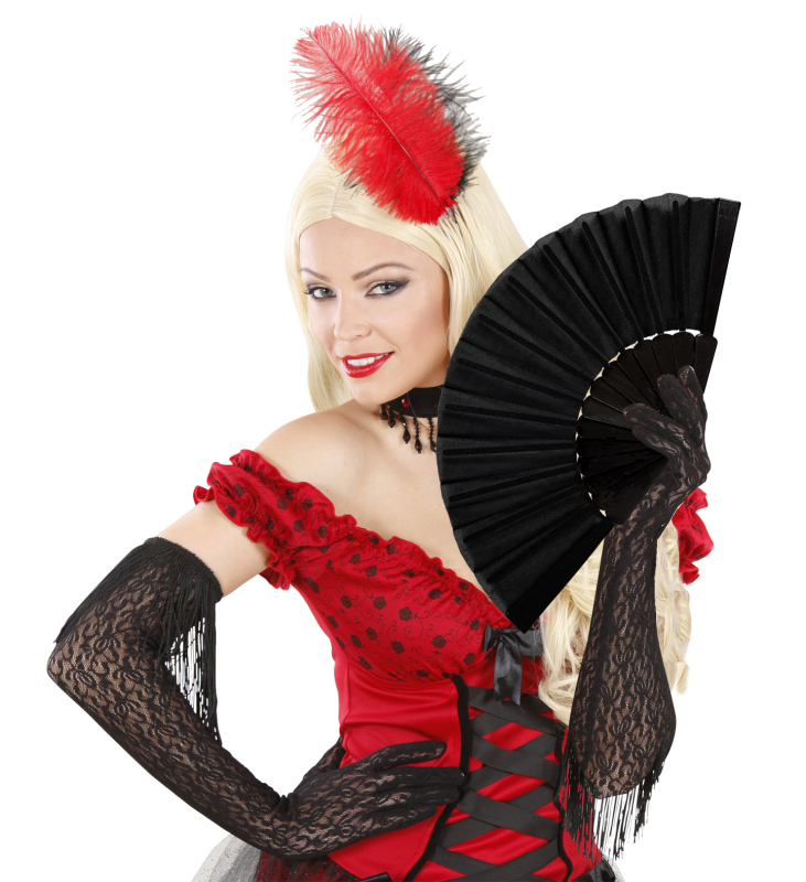 Krásný vějíř se zlatým zdobením. Z průhledného materiálu s zlatou dekorací růžemi. Tkanina má lehce barevný nádech.