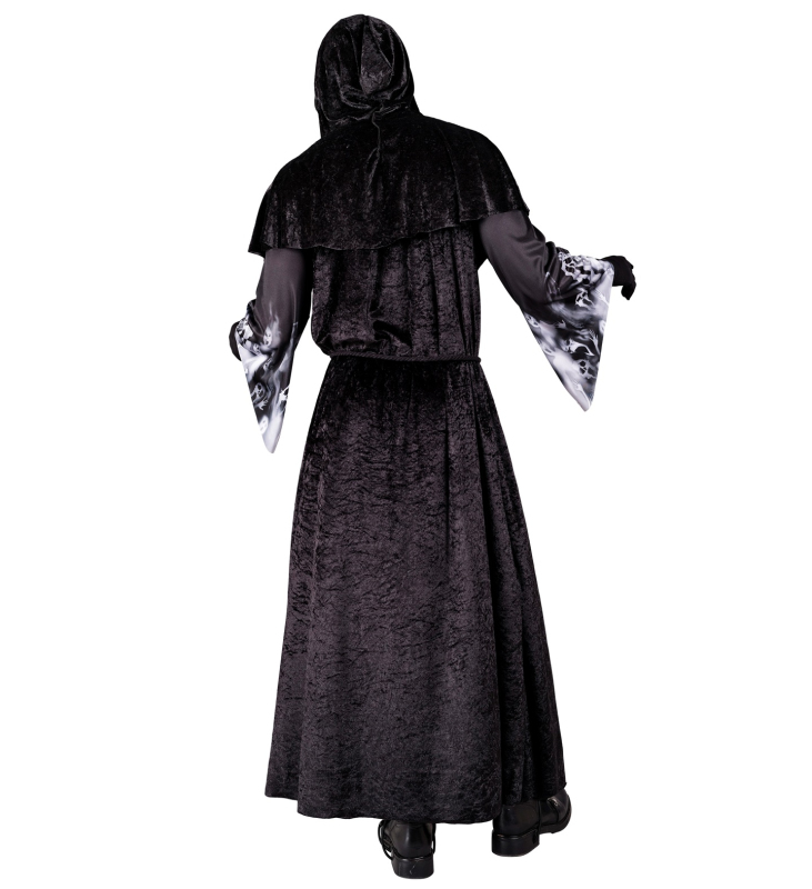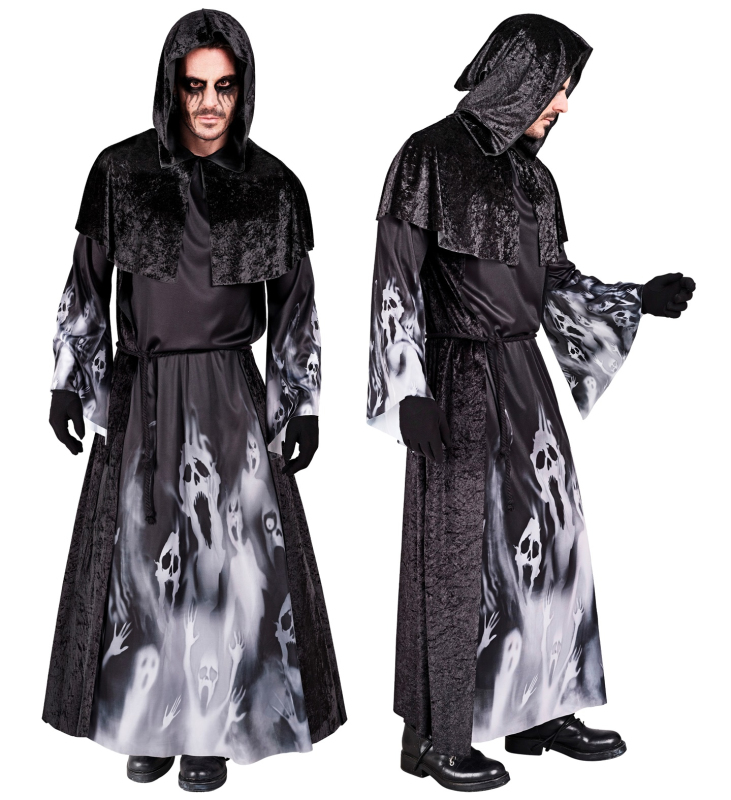 Pánský upíří kostým pro Halloween. Zahrnuje fiži, sako a kabát. Paruka, kalhoty, rukavice, prsten a boty nejsou součástí dodávky. Další velikosti viz. 84775.