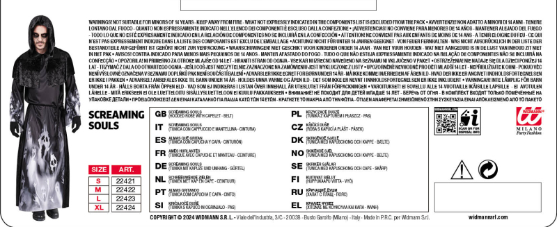 Spodní část tvoří postava opice, včetně vycpaných nohou lidské postavy.Tričko není součástí kostýmu. Max. obvod pasu je 100 cm. Pas je do gumy s tkanicí. Vhodné pro muže i ženy standartní postvy.