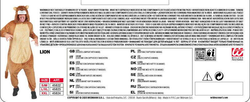 Kostým vlka obsahuje horní díl, kalhoty, rukavice a masku.