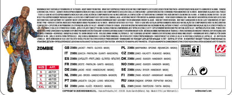 Tento kostým komára pro dospělé se skládá z kapuce, obleku a křídel. Kapuci lze přetáhnout přes hlavu a vpředu zavřít suchým zipem. Představuje hlavu komára s výhružným pohledem v očích. Obočí je z umělé kožešiny a červený jazyk je dlouhý. Pěnový oblek představuje hnědobílého pruhovaného komára. Po stranách jsou vyobrazeny malé nožičky. Na zádech lze nosit dvojici průhledných síťovaných křídel s rámem. Moskytiérový oblek bude ideální na karneval nebo k nošení na vtipné tematické párty