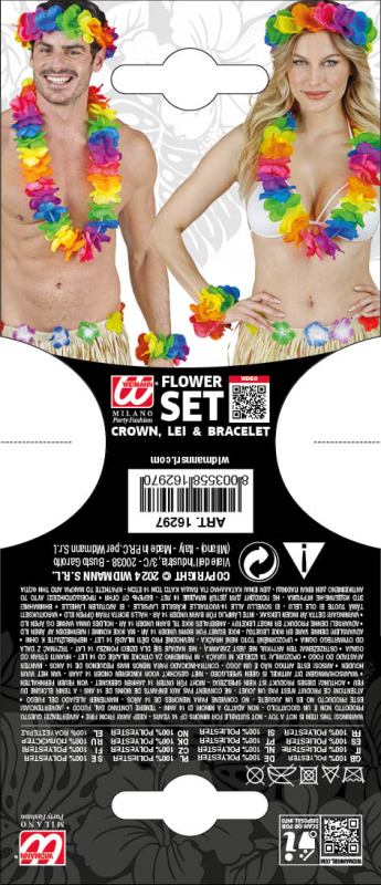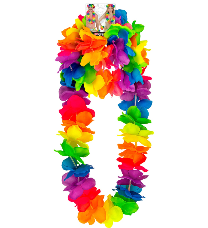 Havajský set obsahuje sukni, věnec a květ do vlasů. V růžové, červené, modré a pestré variantě. Délka sukně 50 cm. Po obvodu sukně guma 70 cm (maximální natažení 120 cm).